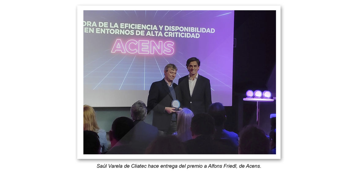 Por una parte, el premio al mejor proyecto de "Mejora de la eficiencia y disponibilidad en entornos de alta criticidad" de data center ha recaído en Acens, por la renovación en su centro de Alcobendas. PQC fue la responsable del análisis preliminar y, posteriormente, del diseño del proceso de reingeniería y dirección de la obra de transformación llevada a cabo por Cliatec.