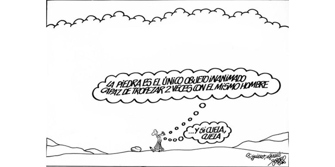 ** Esta viñeta fue la última de Forges, de publicación póstuma, y donde, en su momento, no me fijé en el pequeño mensaje sobre su firma (“Os quiero, afirmo”). ¡Grande Antonio!